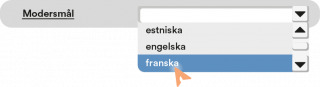 | Om innehållet i fältet är nytt och finns inte i menyn, t.ex. språket afrikaans, ska du skriva dela ordet i fältet. Programmet behandlar den nya uppgiften kalkylmässigt: Annat språk, vilket? | ![]() |
